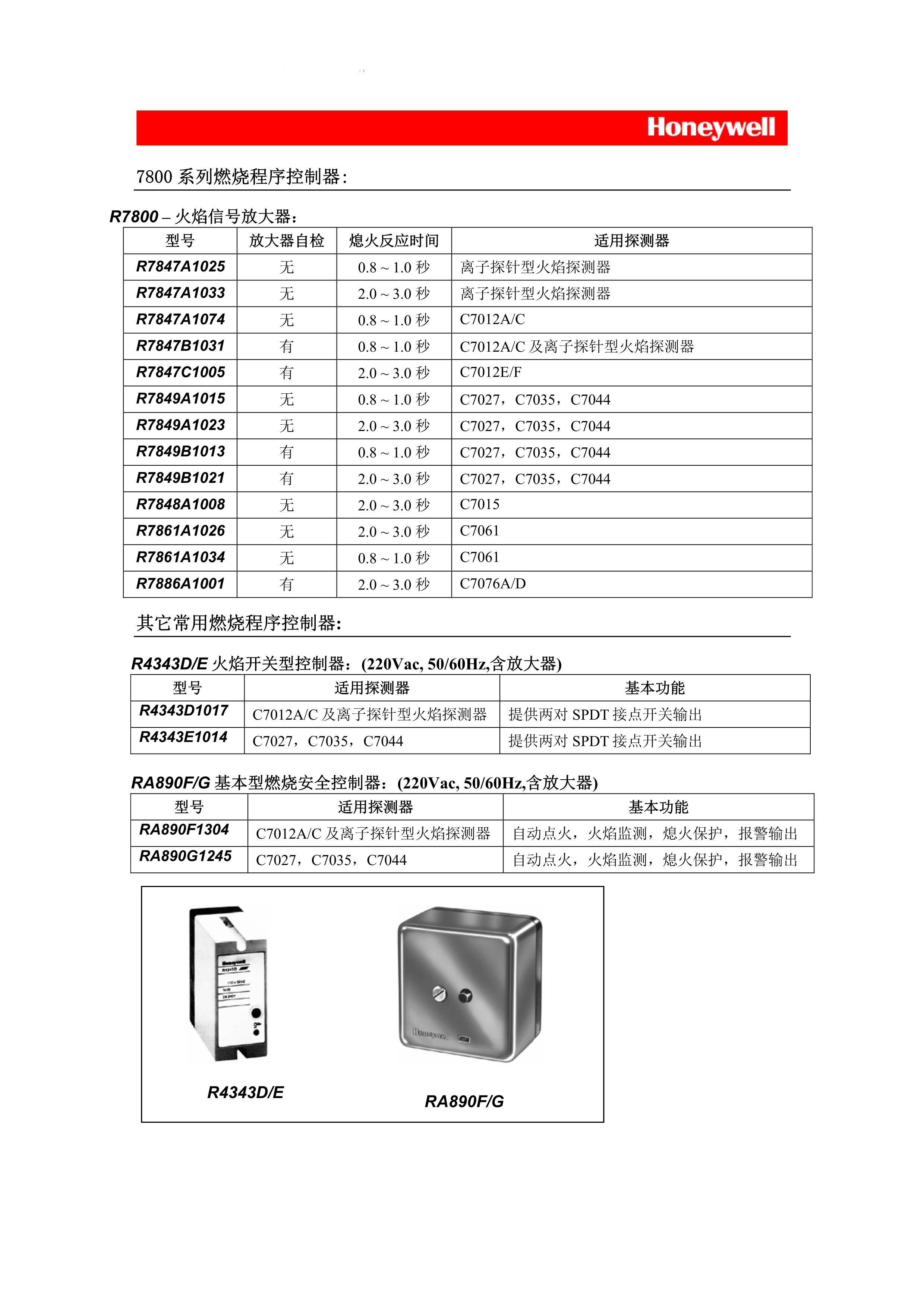 霍尼韋爾RA890G系列燃燒安全控制器