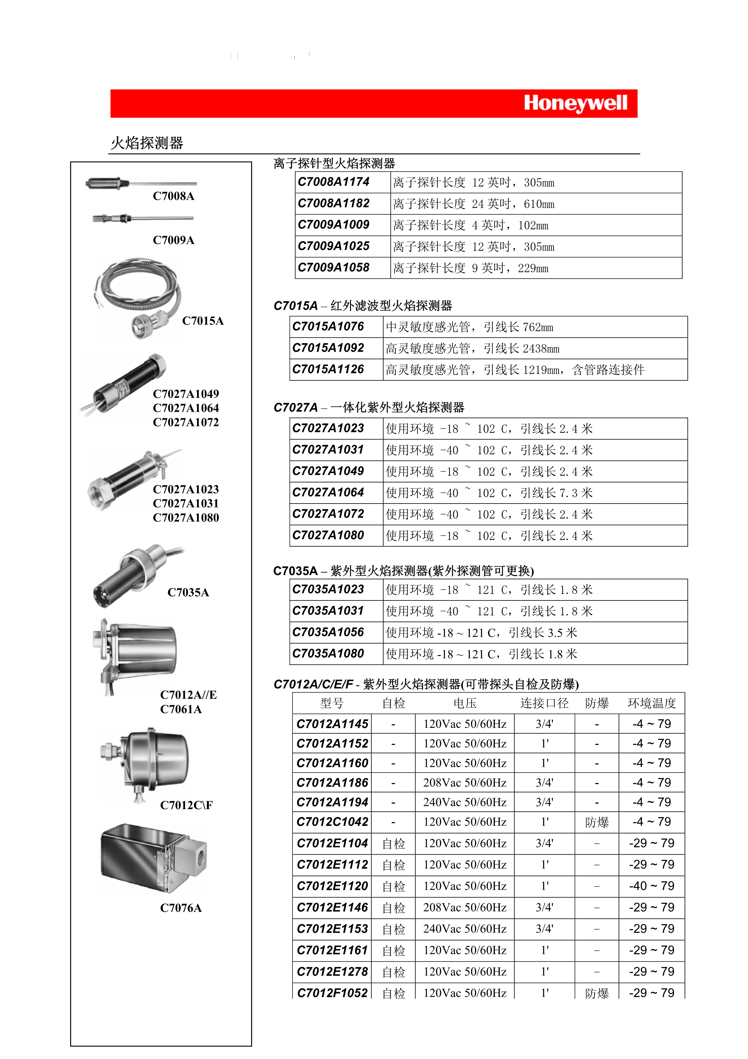 霍尼韋爾C7027A1049火焰檢測器