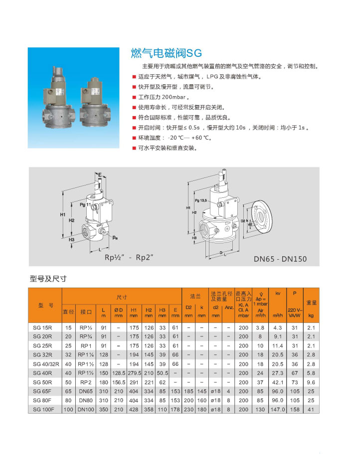 施能SG系列快開快閉燃氣電磁閥